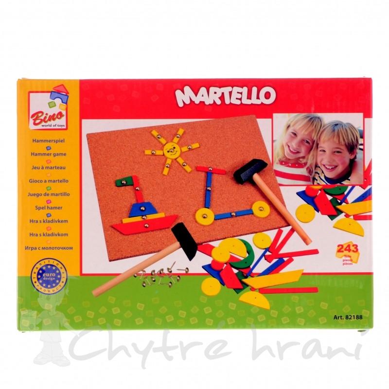 Základem hry je korková deska, na kterou děti pomocí kladívka jednoduše zaťukávají tvary. Velký výběr rozmanitých tvarů v