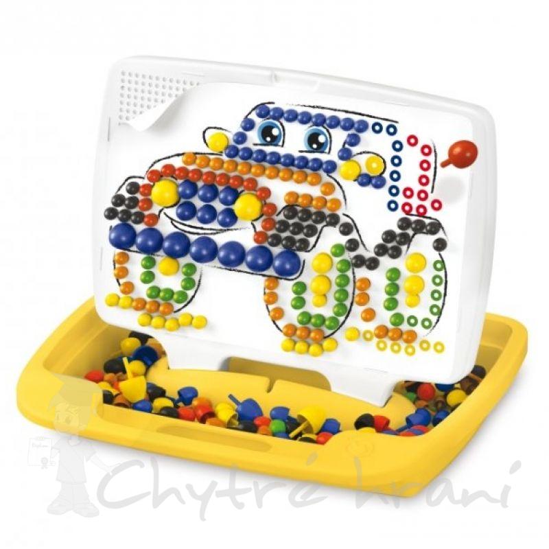 Jednoduchá bezpečná mozaika pro děti od 2 let, velké knoflíky a 16 předloh, které pomohou dětem vytvářet obrázky. A mohou hrát samy.