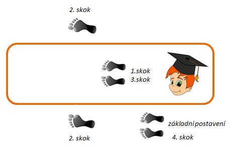 - Skokem snožmo hráč přeskočí mimo ramena gumy – na druhou stranu.