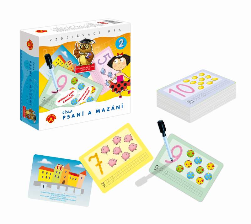 mazací tabulky budou děti bavit více. Děti se kreslením po předloze naučí správné tvary čísel a zároveň si číslici/číslo spojí s počtem obrázků na kartičce. Hra tak trénuje nejen čtení, psaní, ale i počítání.